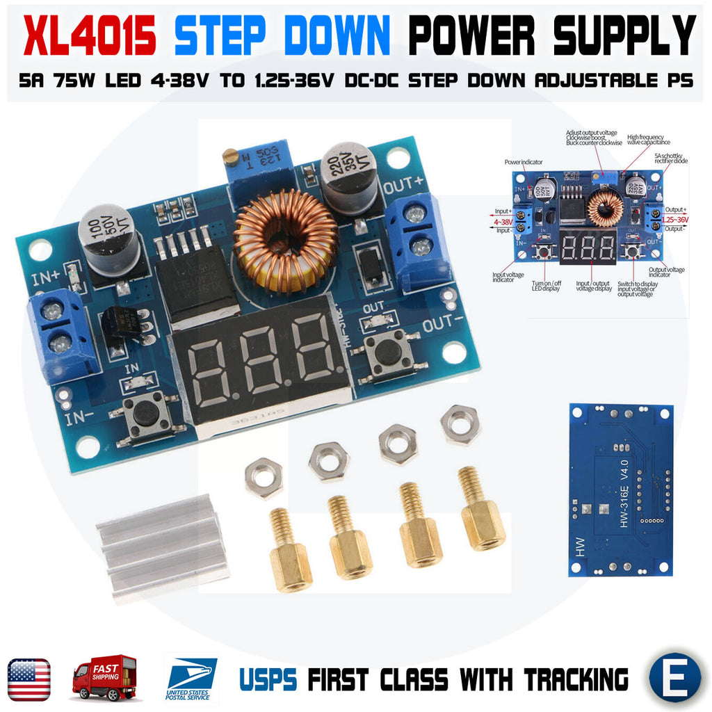 1 x XL4015 5A High power 75W DC-DC adjustable step-down module+LED Voltmeter Power supply module