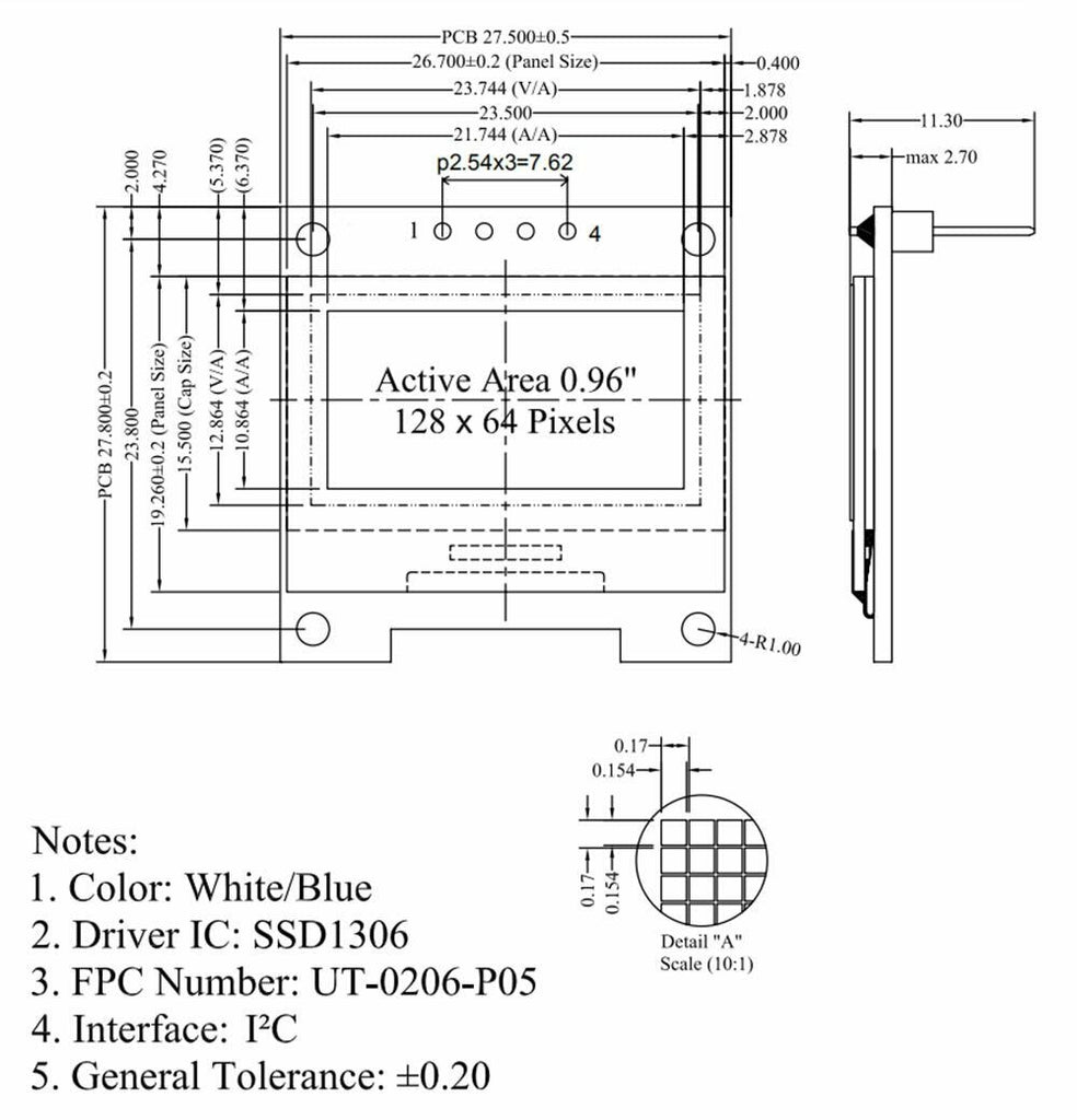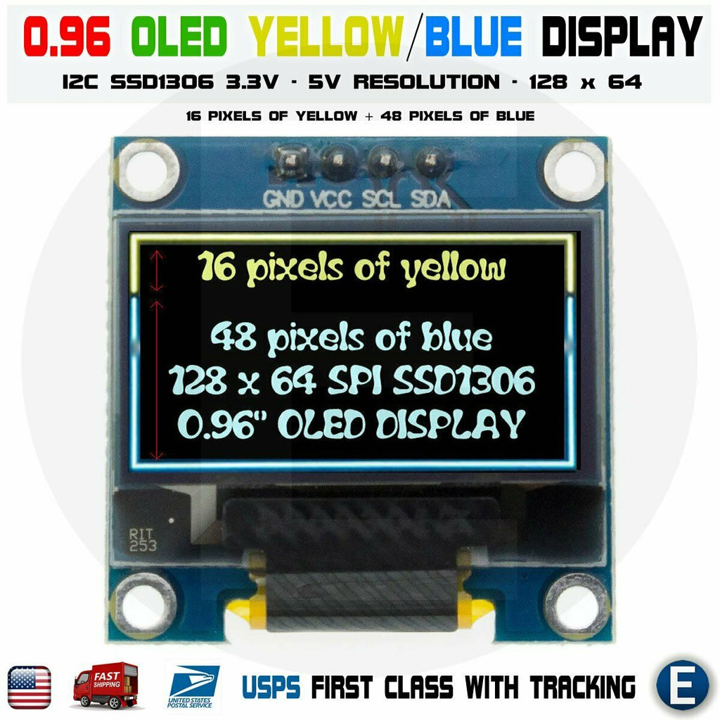1 x 0.96" I2C IIC 28X64 LED OLED LCD Display Module for Arduino Yellow/Blue