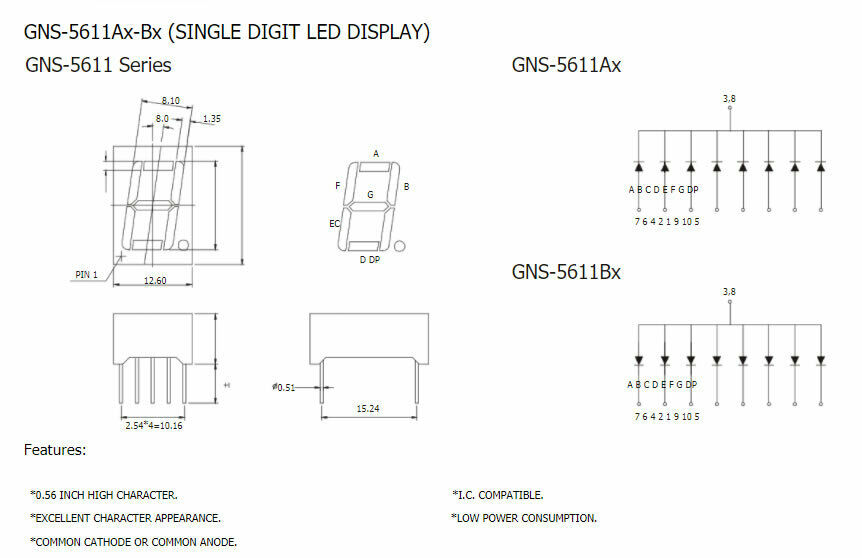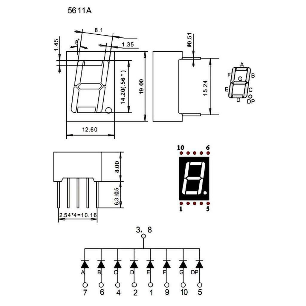 10pcs 7 segment Common Cathode 1 Bit Digital Tube 0.56" 0.56in Red LED Display 5611AH