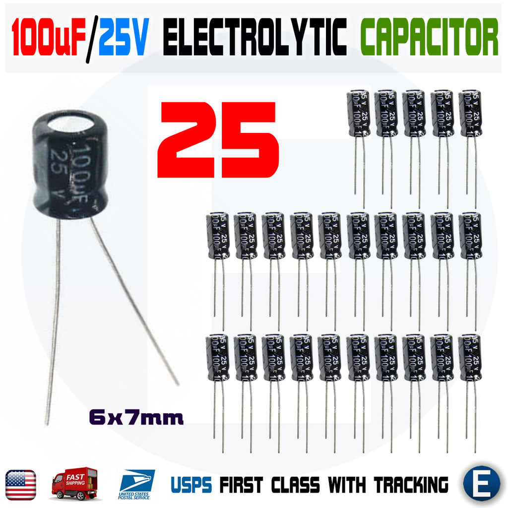 25PCS 100uF 25V 105C Capacitor Electrolytic 6x7mm for 25V 16V 10V 6.3V