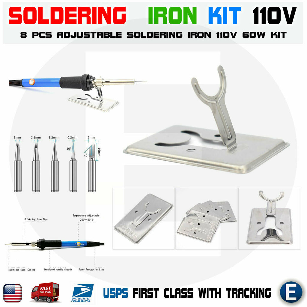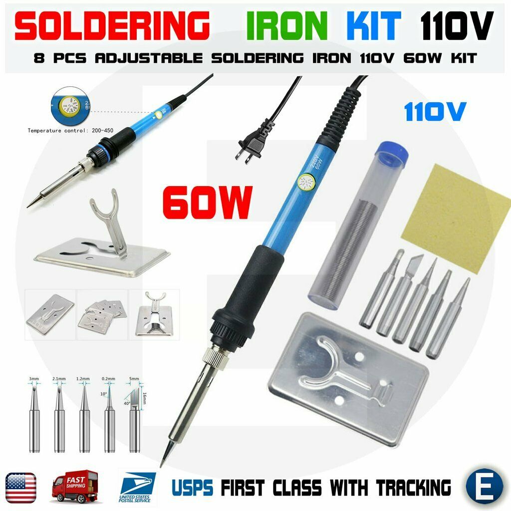 60W 110V Adjustable Temperature Soldering Iron: Inner-heated ceramic technology makes the soldering kit heat up very quickly (within 2 minutes).