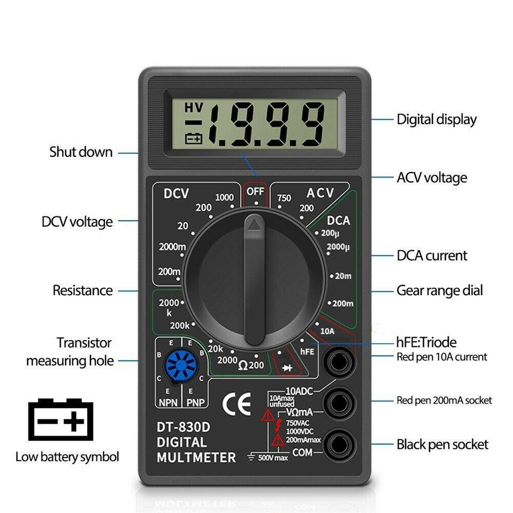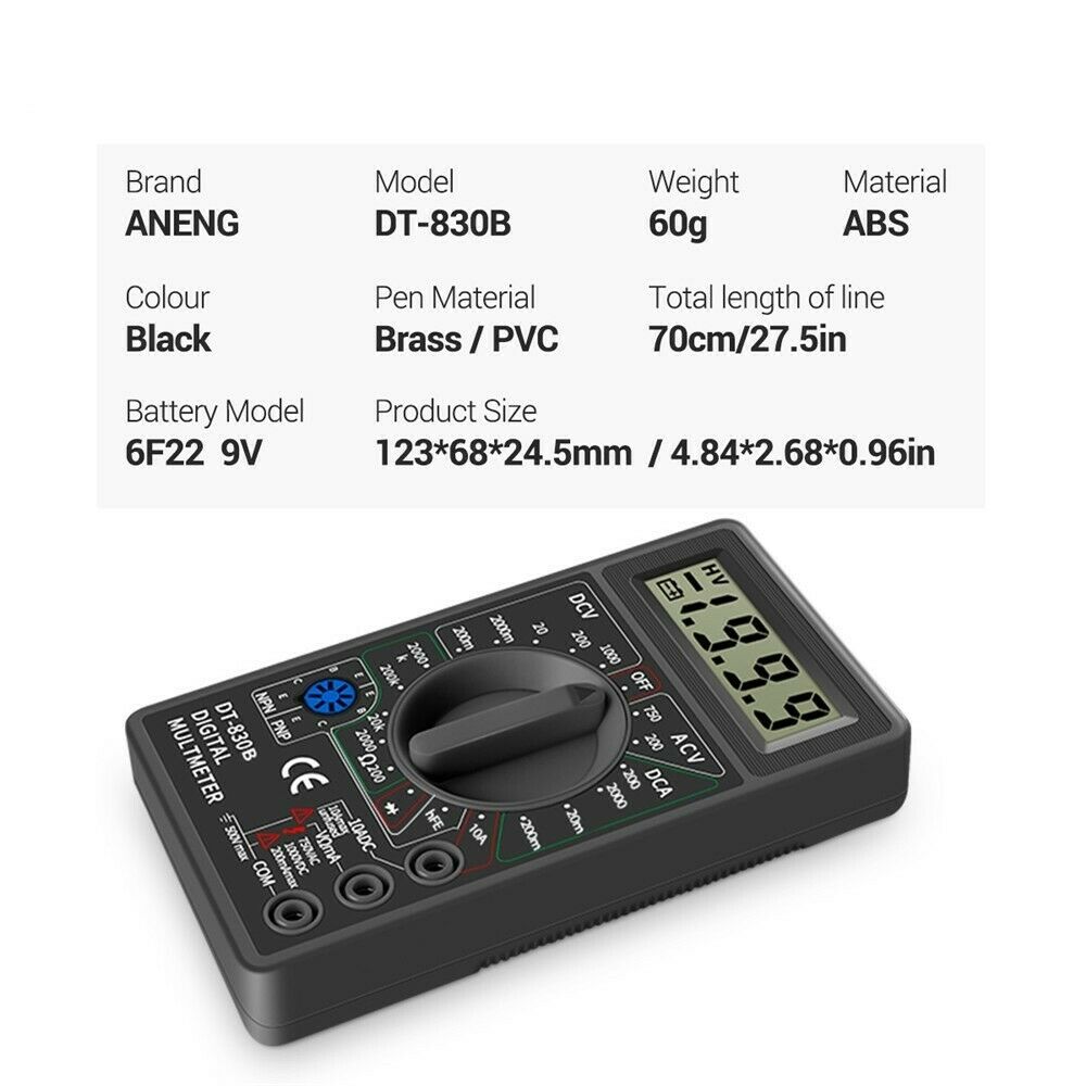 Digital Multimeter Electric Voltmeter Ammeter Ohm Tester AC/DC 750/1000V Amp Volt Ohm Tester Multi Meter Features: 3 1/2 digits, 7segment, 0.5" high LCD Display. Max display: 1999, Auto polarity d...