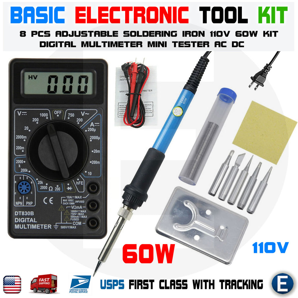 Digital Multimeter Soldering Iron Voltmeter Complete Basic AC DC Tester Kit